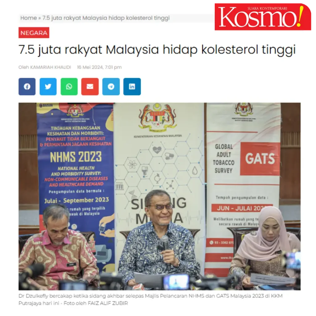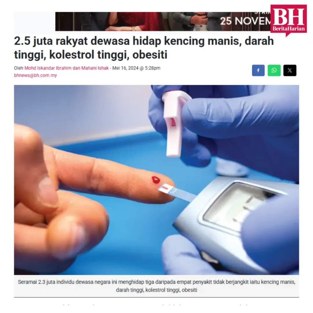 “Setiap 10 minit, seorang rakyat Malaysia kehilangan nyawa akibat komplikasi penyakit tidak berjangkit seperti kencing manis, darah tinggi, dan kolesterol tinggi.”