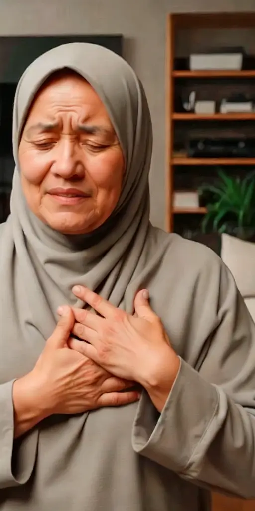 Ketika dia sedang berehat selepas makan malam.. tiba-tiba terasa jantungnya berdegup laju. Tangannya kebas, nafasnya semakin pendek, dan peluh dingin membasahi dahi.